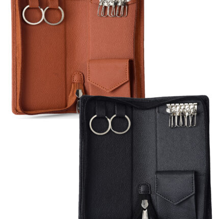 Essart Double Pokcet Key case PU/Leather Key Pouch LeatherĀ for Bank Keys Pouch Key case Pouch Keychain Holder Pouch with Zipper Closure Pack of 2(Black-Brown)