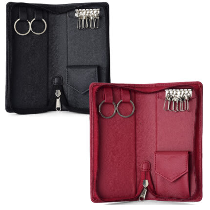 Essart Double Pokcet Key case PU/Leather Key Pouch LeatherĀ for Bank Keys Pouch Key case Pouch Keychain Holder Pouch with Zipper Closure Pack of 2(Black-Cherry)