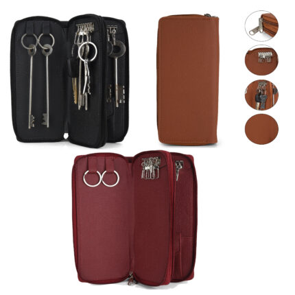 Essart Double Pokcet Key case PU/Leather Key Pouch LeatherĀ for Bank Keys Pouch Key case Pouch Keychain Holder Pouch with Zipper Closure Pack of 3 (Black-Brown-Cherry)