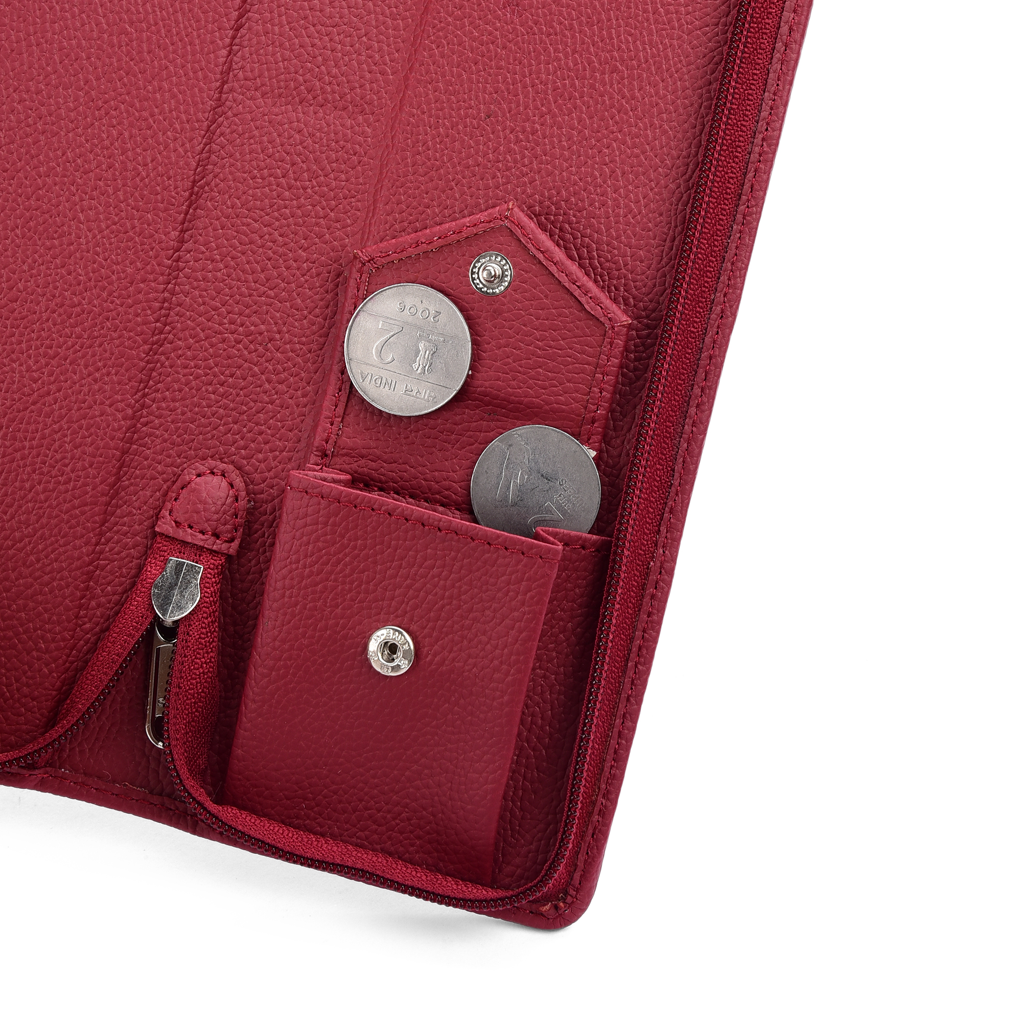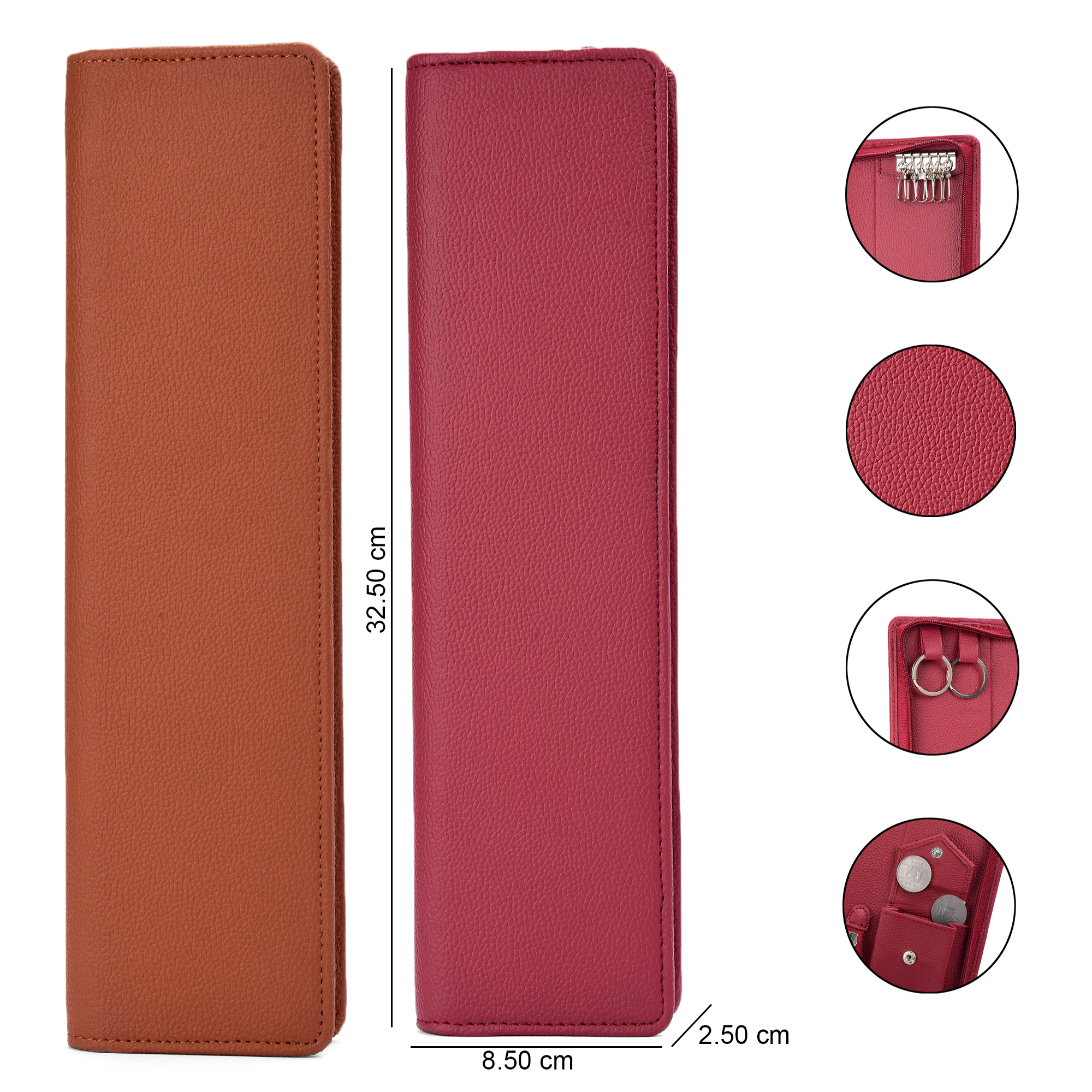 Essart Double Pokcet Key case PU/Leather Key Pouch LeatherĀ for Bank Keys Pouch Key case Pouch Keychain Holder Pouch with Zipper Closure Pack of 2(Brown-Cherry)
