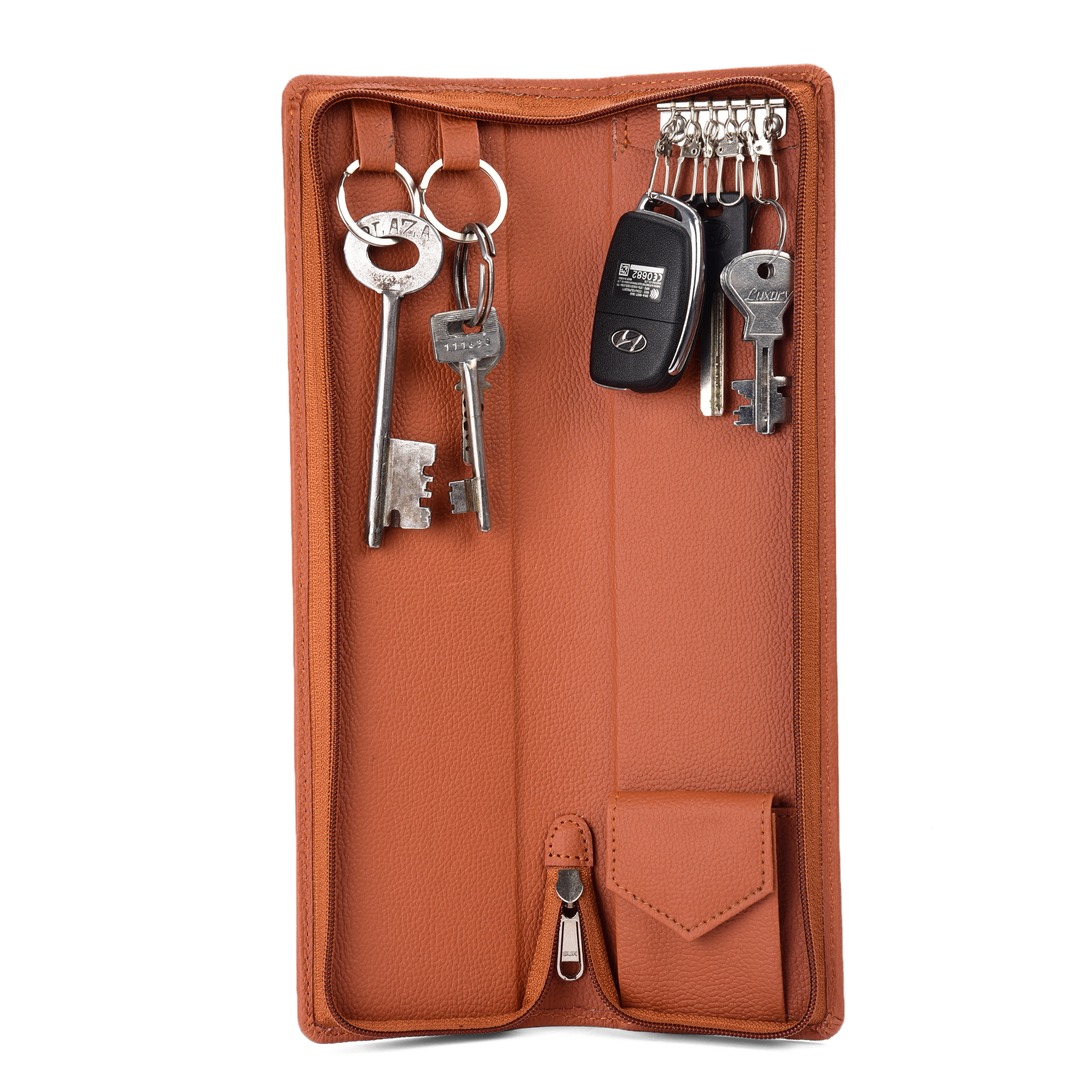 Essart Double Pokcet Key case PU/Leather Key Pouch LeatherĀ for Bank Keys Pouch Key case Pouch Keychain Holder Pouch with Zipper Closure Brown