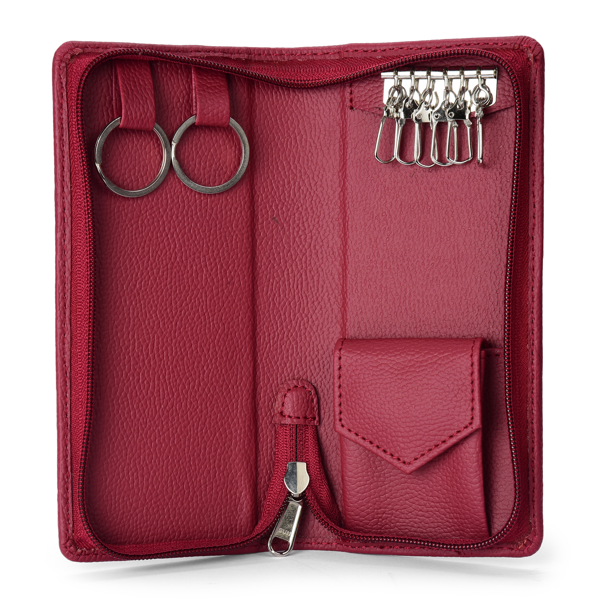 Essart Double Pokcet Key case PU/Leather Key Pouch LeatherĀ for Bank Keys Pouch Key case Pouch Keychain Holder Pouch with Zipper Closure Pack of 2(Black-Cherry)