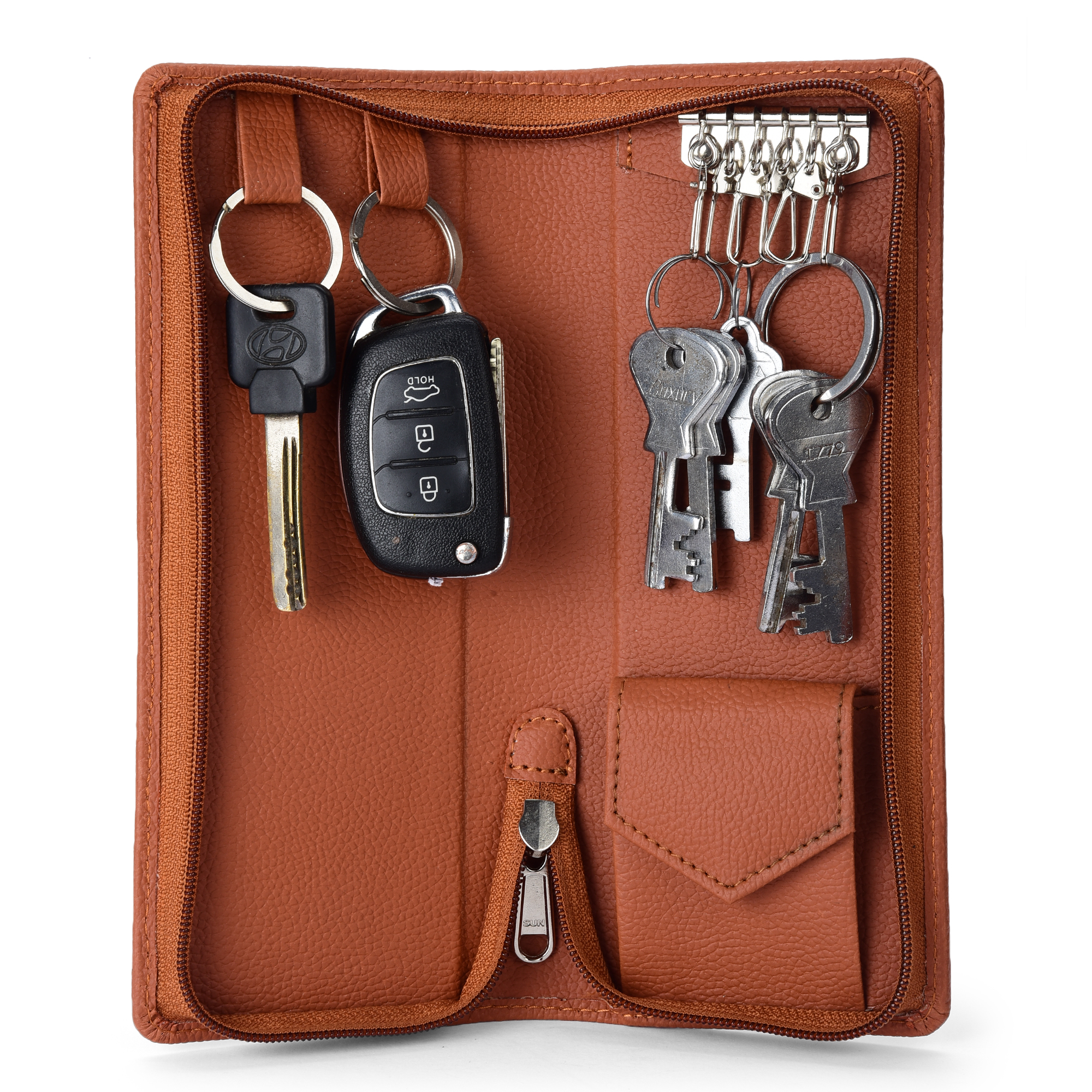 Essart Double Pokcet Key case PU/Leather Key Pouch LeatherĀ for Bank Keys Pouch Key case Pouch Keychain Holder Pouch with Zipper Closure Brown