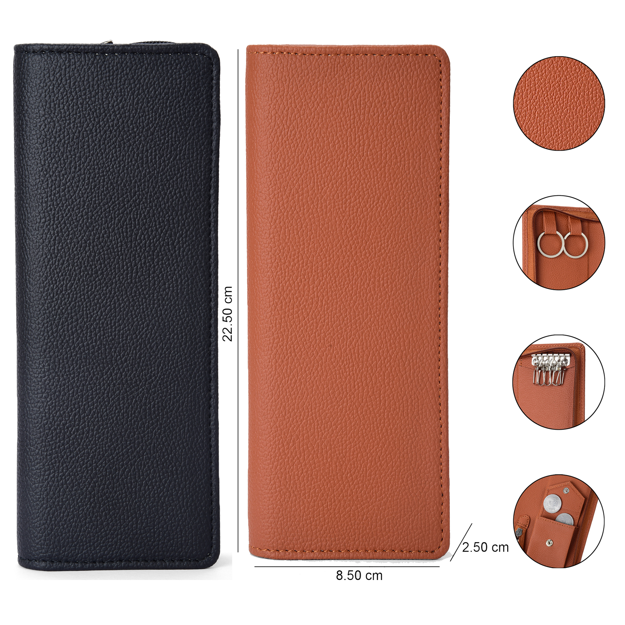 Essart Double Pokcet Key case PU/Leather Key Pouch LeatherĀ for Bank Keys Pouch Key case Pouch Keychain Holder Pouch with Zipper Closure Pack of 2(Black-Brown)