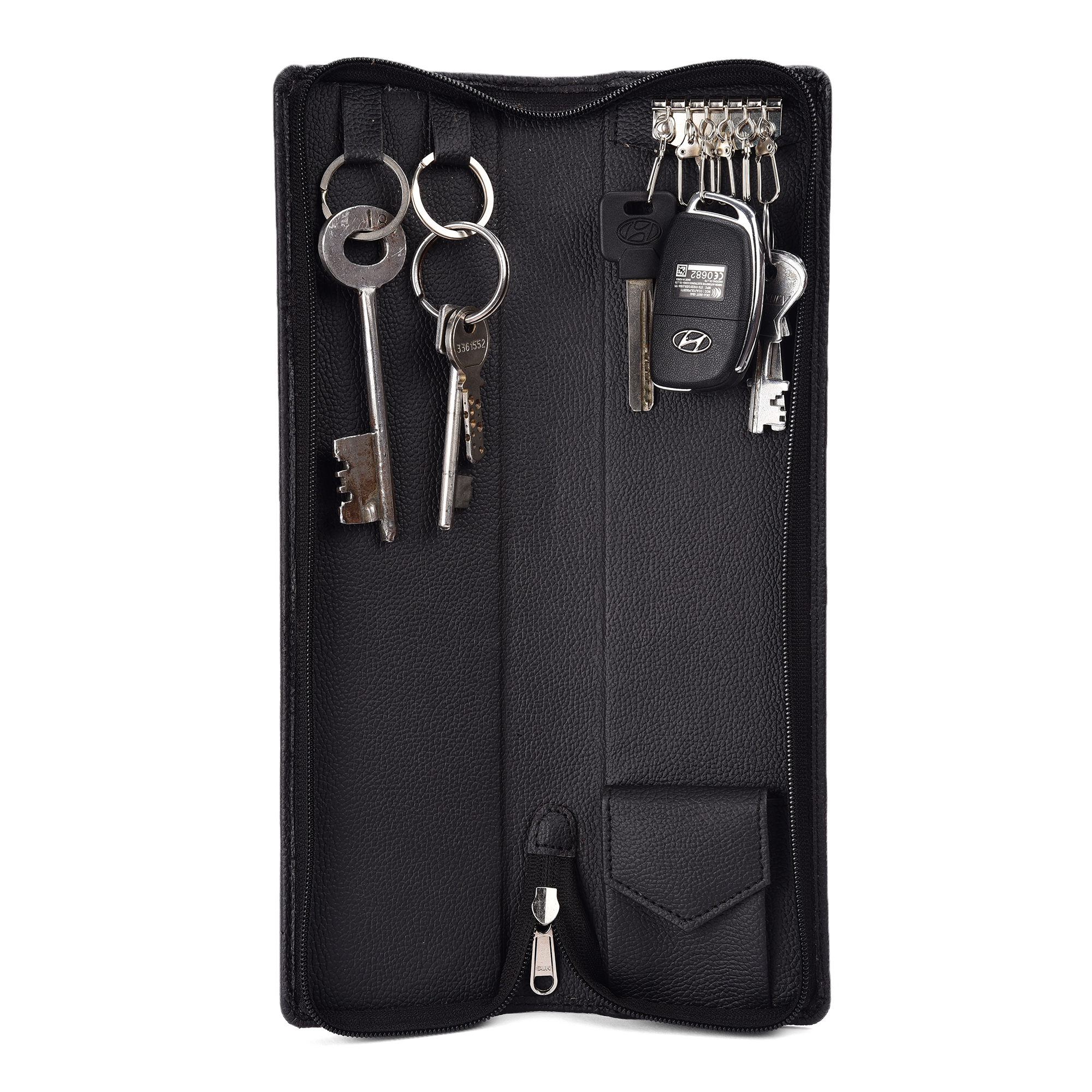 Essart Double Pokcet Key case PU/Leather Key Pouch LeatherĀ for Bank Keys Pouch Key case Pouch Keychain Holder Pouch with Zipper Closure Black