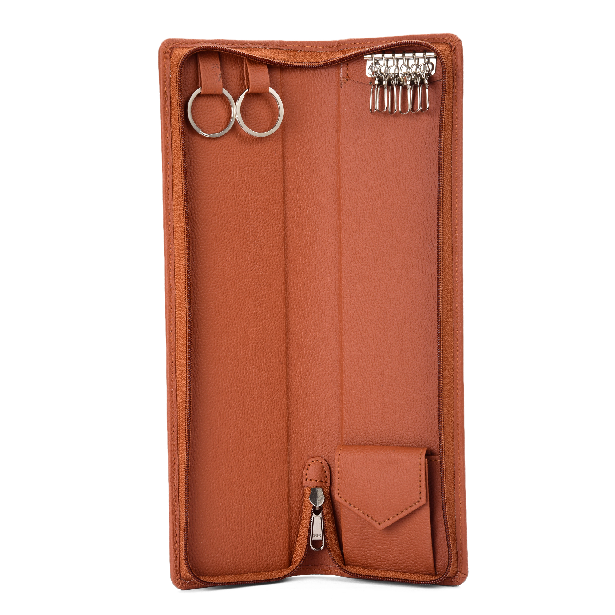 Essart Double Pokcet Key case PU/Leather Key Pouch LeatherĀ for Bank Keys Pouch Key case Pouch Keychain Holder Pouch with Zipper Closure Brown