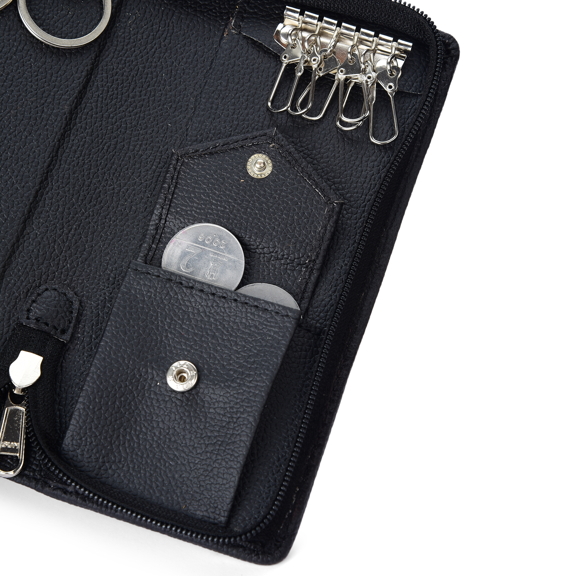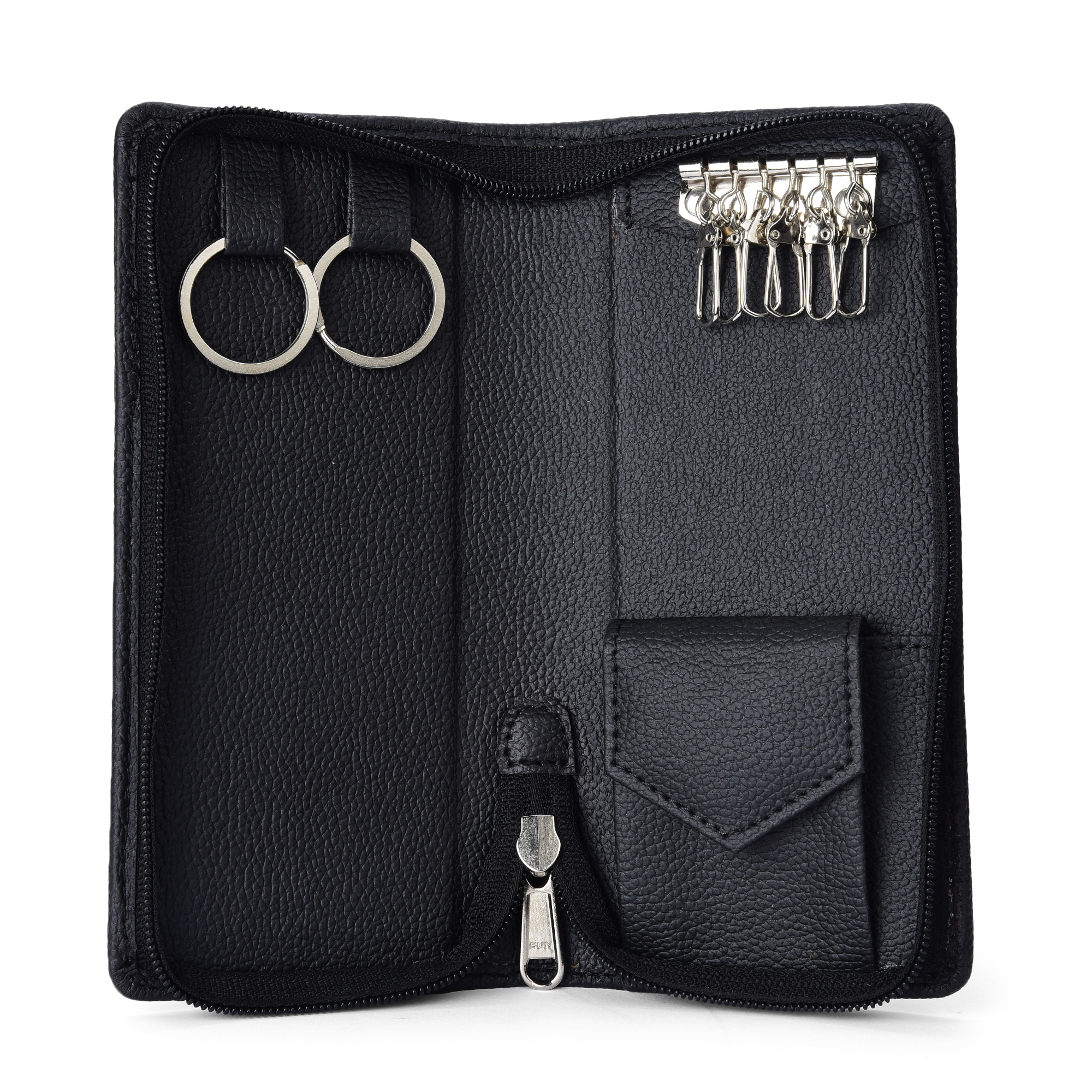 Essart Double Pokcet Key case PU/Leather Key Pouch LeatherĀ for Bank Keys Pouch Key case Pouch Keychain Holder Pouch with Zipper Closure Black
