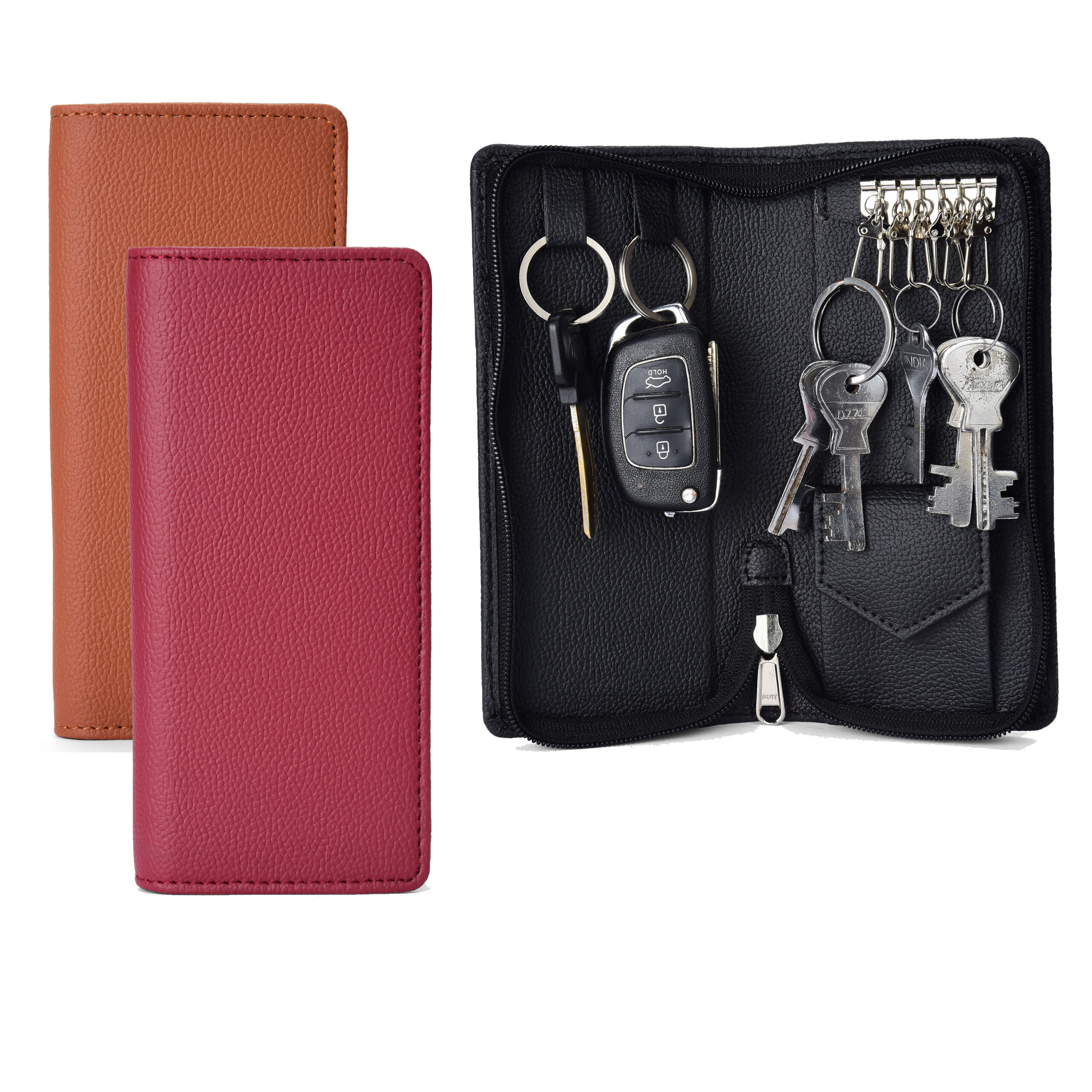 Essart Double Pokcet Key case PU/Leather Key Pouch LeatherĀ for Bank Keys Pouch Key case Pouch Keychain Holder Pouch with Zipper Closure Pack of 3 (Black-Brown-Cherry)