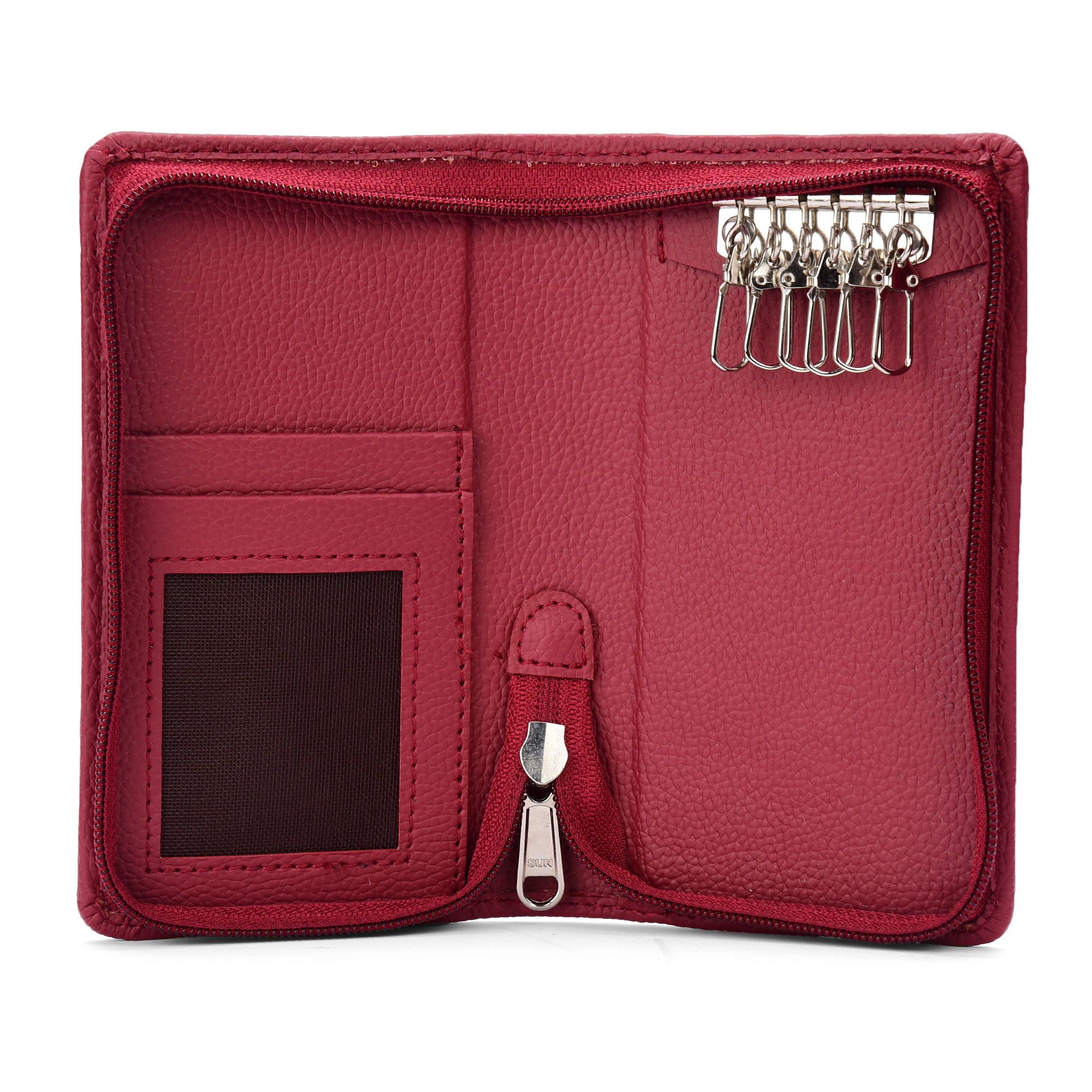 Essart Double Pokcet Key case PU/Leather Key Pouch LeatherĀ for Bank Keys Pouch Key case Pouch Keychain Holder Pouch with Zipper Closure Pack of 2(Black-Cherry)