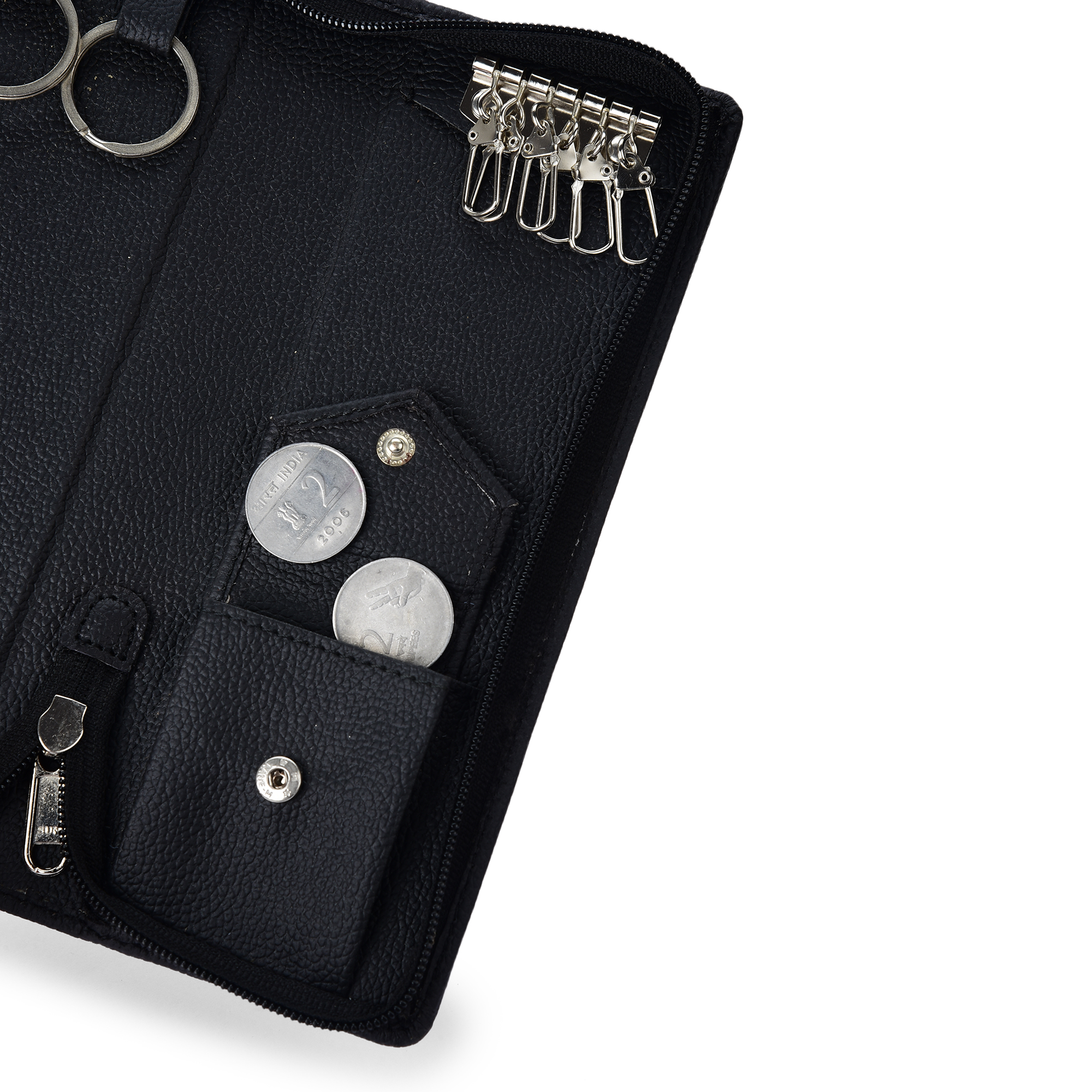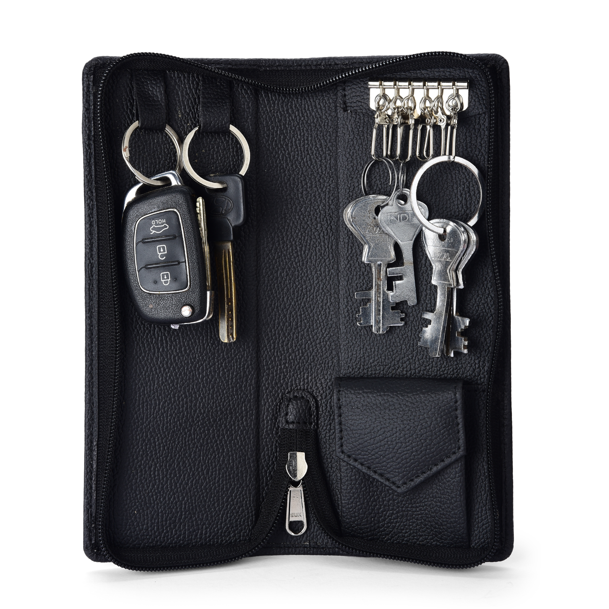 Essart Double Pokcet Key case PU/Leather Key Pouch LeatherĀ for Bank Keys Pouch Key case Pouch Keychain Holder Pouch with Zipper Closure Black