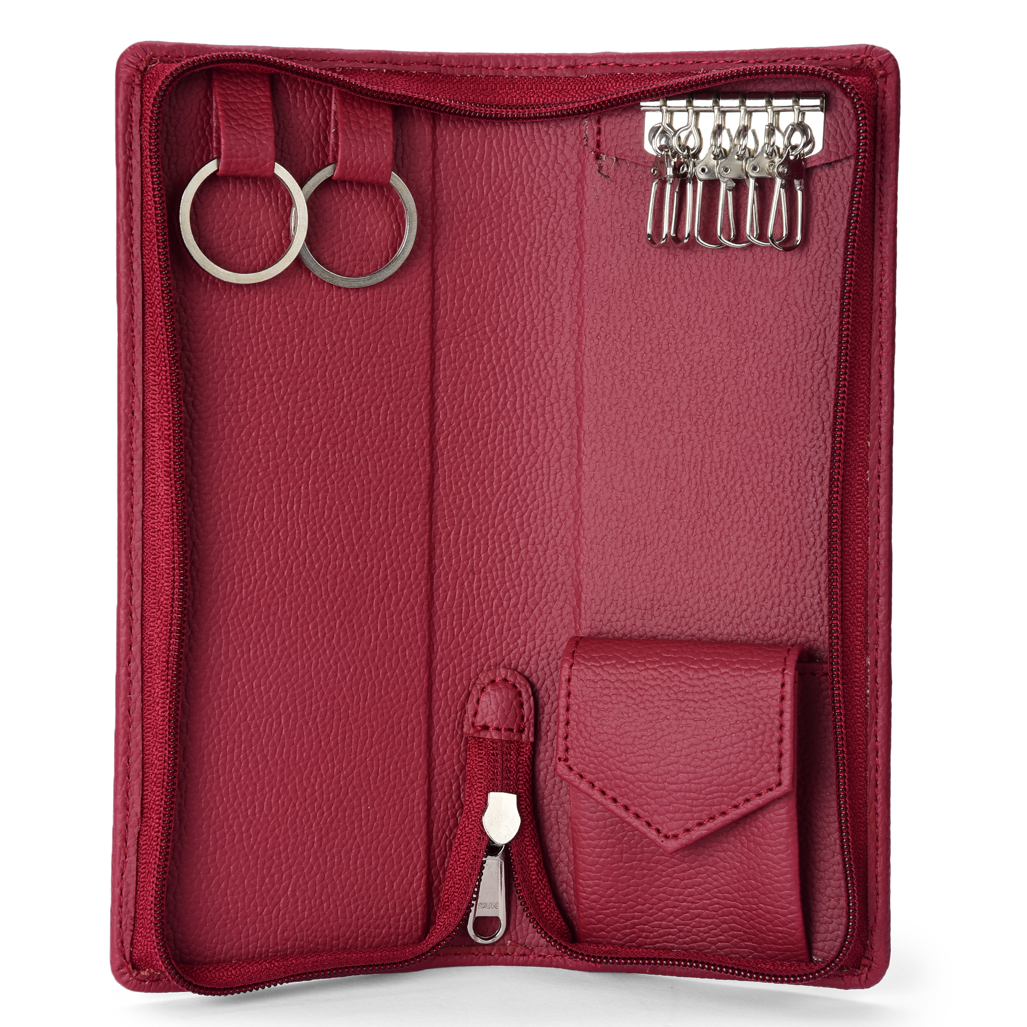 Essart Double Pokcet Key case PU/Leather Key Pouch LeatherĀ for Bank Keys Pouch Key case Pouch Keychain Holder Pouch with Zipper Closure Cherry