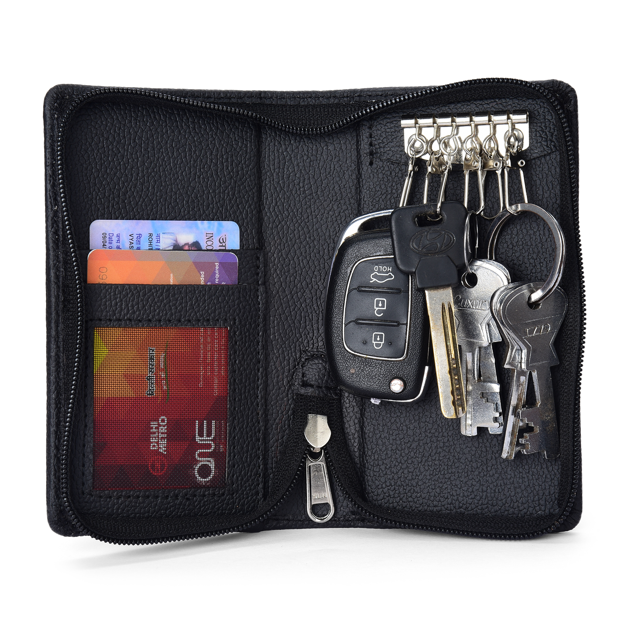 Essart Double Pokcet Key case PU/Leather Key Pouch LeatherĀ for Bank Keys Pouch Key case Pouch Keychain Holder Pouch with Zipper Closure Black